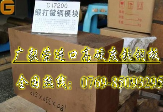 C17510鈹鎳銅 1.鈹鎳銅是一種過飽和固溶體銅基合金、是機械性能,物理性能,化學性能及抗蝕性能良好結合的有色合金 2. 經固溶和時效處理后,具有與特殊鋼相當的高強度極限,彈性極限,屈服極限和疲勞極限; 同時又具備有高的導電率、導熱率、高硬度和耐磨性,高的蠕變抗力及耐蝕性。 3. 廣泛應用于制造各類模具鑲嵌件,替代鋼材制作精度高、形狀復雜的模具焊接電極材料,壓鑄機,注塑機沖頭,耐磨耐蝕工作等